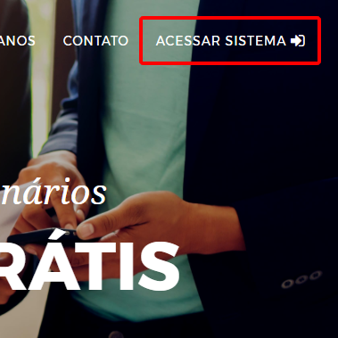 Você pode acessar o sistema via web, celular ou tablet através do nosso site ou pelo aplicativo, para acessar pelo site você deve clicar no link Acessar Sistema na parte superior do site.