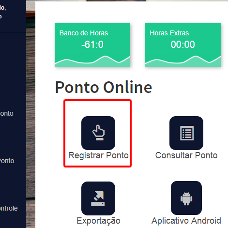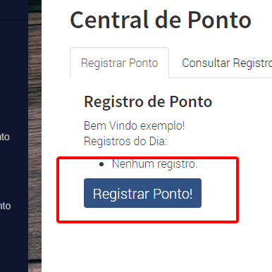 Na tela inicial do sistema você vai clicar no botão Registrar Ponto.
